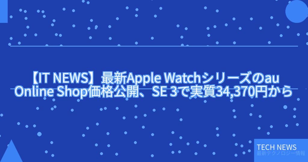 【IT NEWS】最新Apple Watchシリーズのau Online Shop価格公開、SE 3で実質34,370円から
