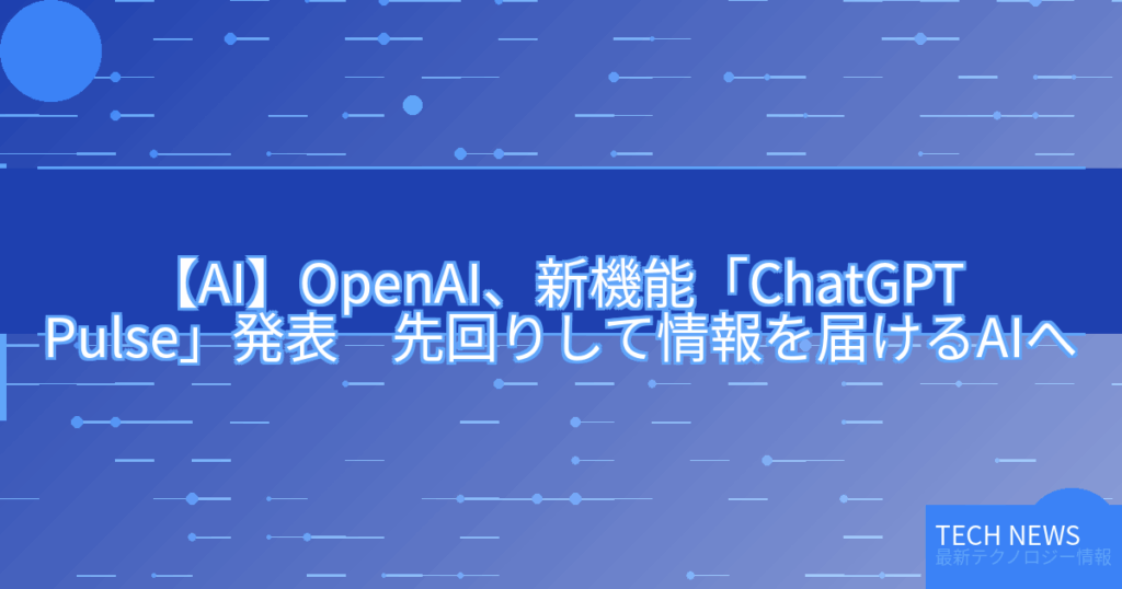 【AI】OpenAI、新機能「ChatGPT Pulse」発表 先回りして情報を届けるAIへ