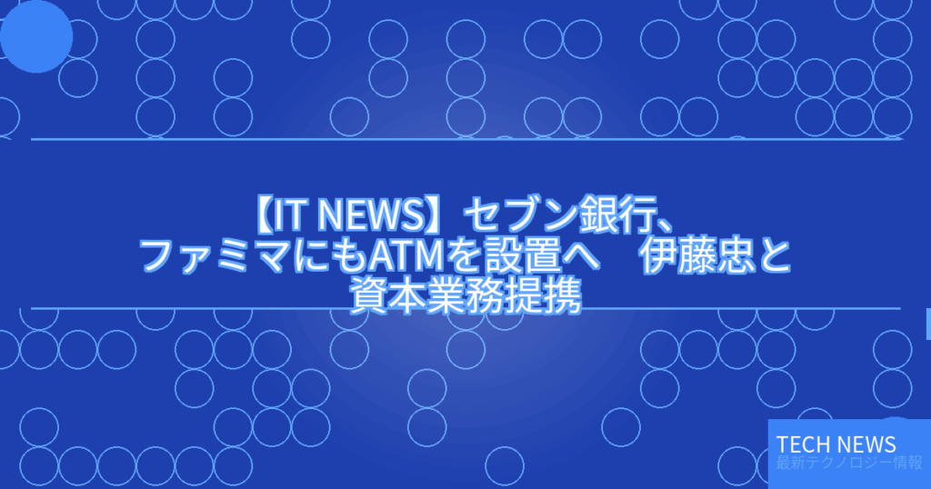 【IT NEWS】セブン銀行、ファミマにもATMを設置へ 伊藤忠と資本業務提携
