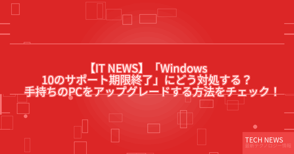 【IT NEWS】「Windows 10のサポート期限終了」にどう対処する? 手持ちのPCをアップグレードする方法をチェック!