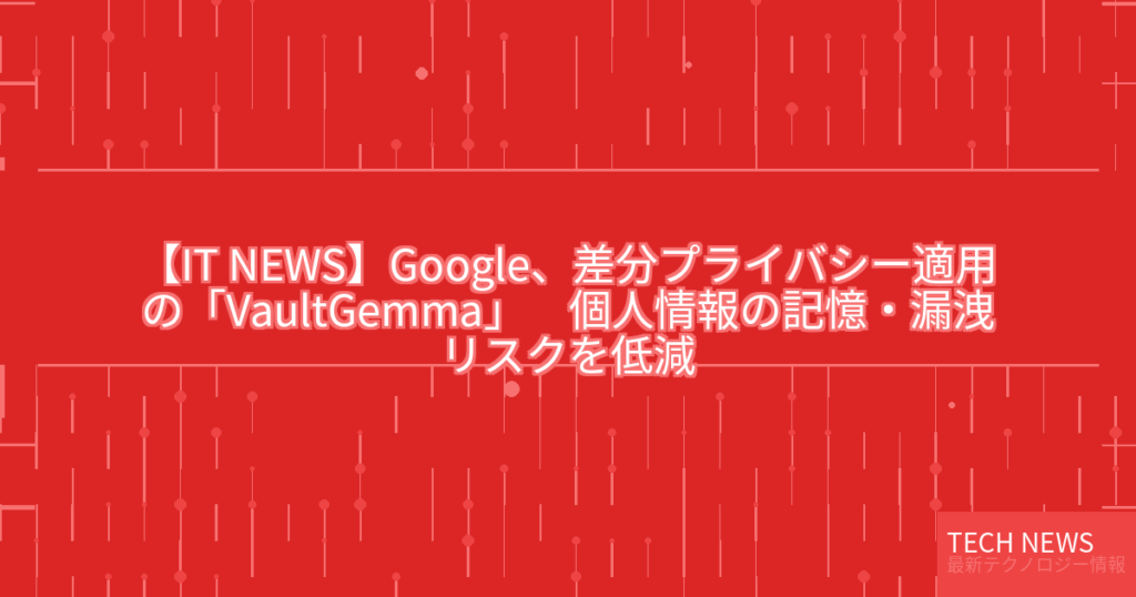 【IT NEWS】Google、差分プライバシー適用の「VaultGemma」 個人情報の記憶・漏洩リスクを低減