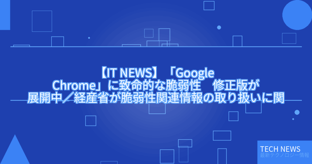 【IT NEWS】「Google Chrome」に致命的な脆弱性 修正版が展開中/経産省が脆弱性関連情報の取り扱いに関して声明を発表