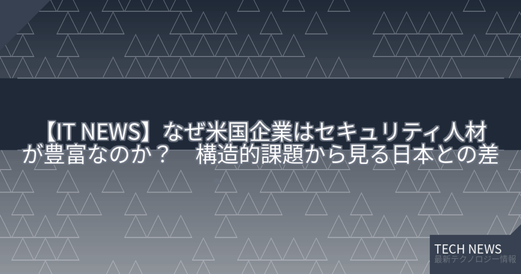 【IT NEWS】なぜ米国企業はセキュリティ人材が豊富なのか? 構造的課題から見る日本との差