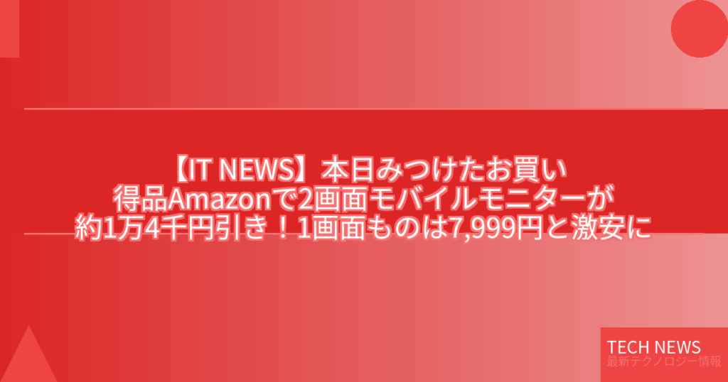 【IT NEWS】本日みつけたお買い得品Amazonで2画面モバイルモニターが約1万4千円引き!1画面ものは7,999円と激安に