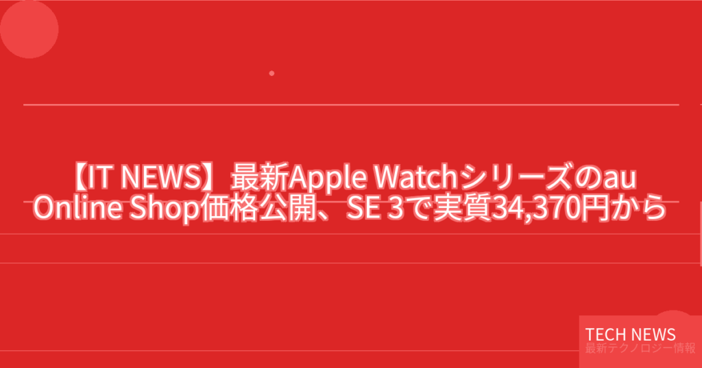 【IT NEWS】最新Apple Watchシリーズのau Online Shop価格公開、SE 3で実質34,370円から