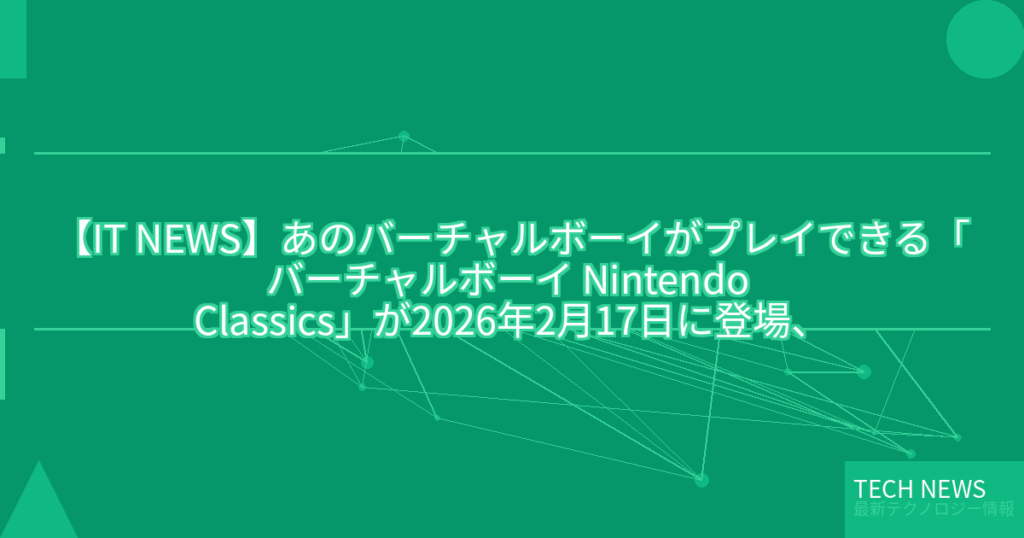 【IT NEWS】あのバーチャルボーイがプレイできる「バーチャルボーイ Nintendo Classics」が2026年2月17日に登場、遊ぶために必要な専用ハードも発売