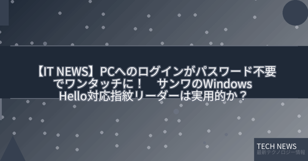 【IT NEWS】PCへのログインがパスワード不要でワンタッチに! サンワのWindows Hello対応指紋リーダーは実用的か?