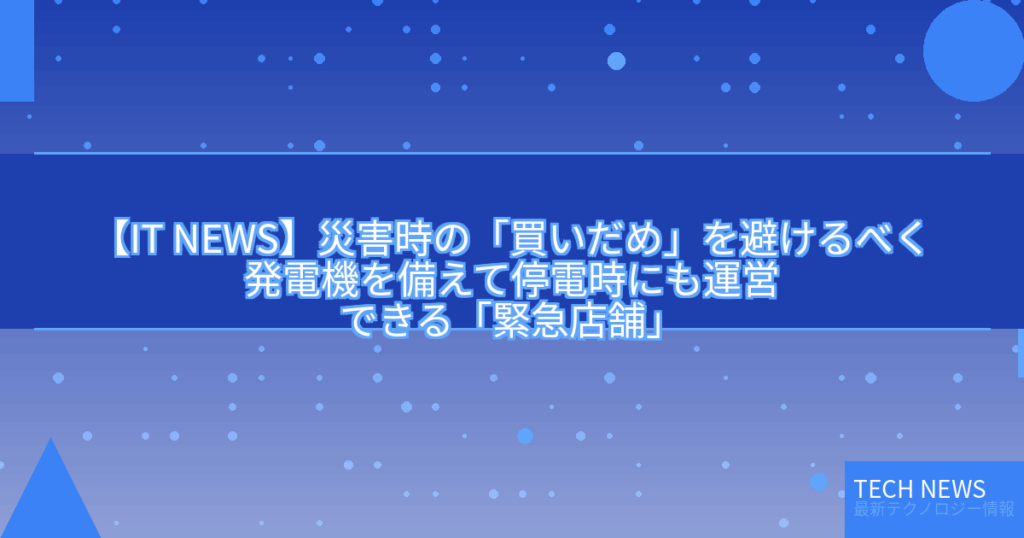 【IT NEWS】災害時の「買いだめ」を避けるべく発電機を備えて停電時にも運営できる「緊急店舗」をデンマークのスーパーマーケットチェーンが設置