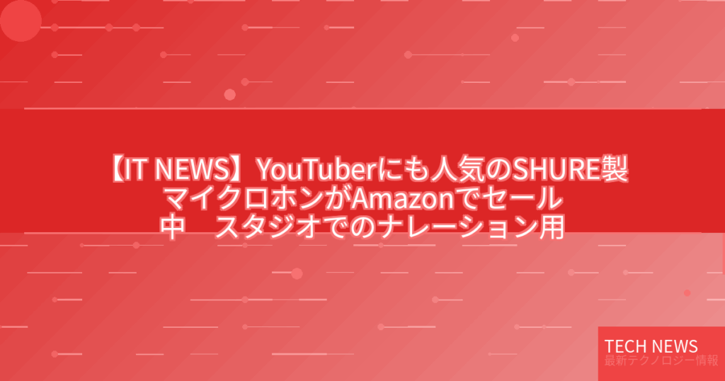 【IT NEWS】YouTuberにも人気のSHURE製マイクロホンがAmazonでセール中 スタジオでのナレーション用にデザインされた「SM7B」が4万9747円