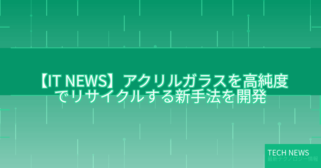 【IT NEWS】アクリルガラスを高純度でリサイクルする新手法を開発