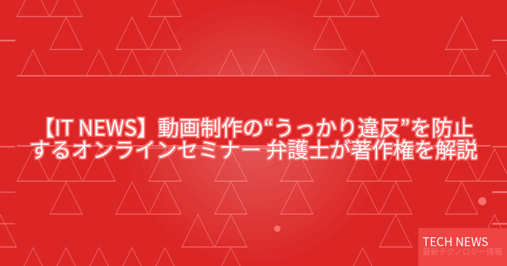 【IT NEWS】動画制作の“うっかり違反”を防止するオンラインセミナー 弁護士が著作権を解説