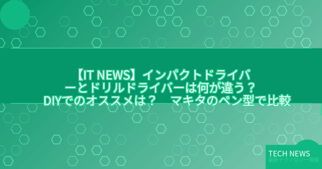【IT NEWS】インパクトドライバーとドリルドライバーは何が違う? DIYでのオススメは? マキタのペン型で比較してみた テレワークグッズ・ミニレビュー 第141回