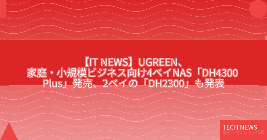 【IT NEWS】UGREEN、家庭・小規模ビジネス向け4ベイNAS「DH4300 Plus」発売、2ベイの「DH2300」も発表