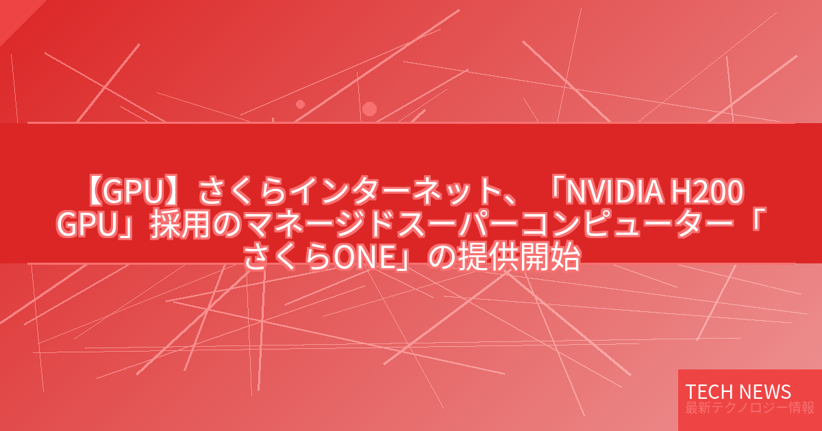 記事タイトル:さくらインターネット、「NVIDIA H200 GPU」採用のマネージドスーパーコンピューター「さくらONE」の提供開始