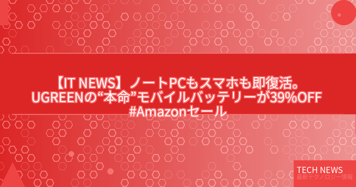 記事タイトル:ノートPCもスマホも即復活。UGREENの“本命”モバイルバッテリーが39%OFF #Amazonセール