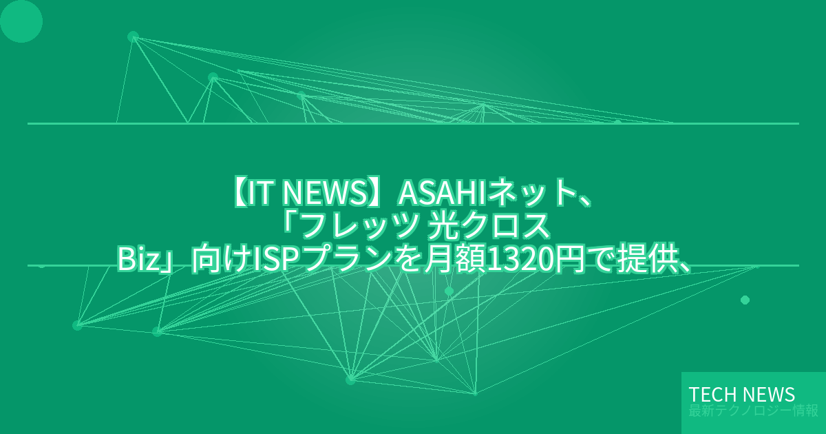 ・元記事タイトル:ASAHIネット、「フレッツ 光クロス Biz」向けISPプランを月額1320円で提供、固定IPも年度内に提供予定