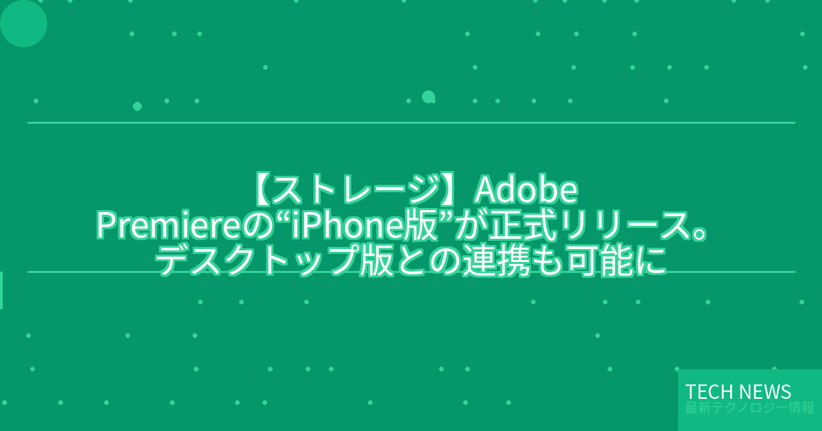 【ストレージ】Adobe Premiereの“iPhone版”が正式リリース。デスクトップ版との連携も可能に