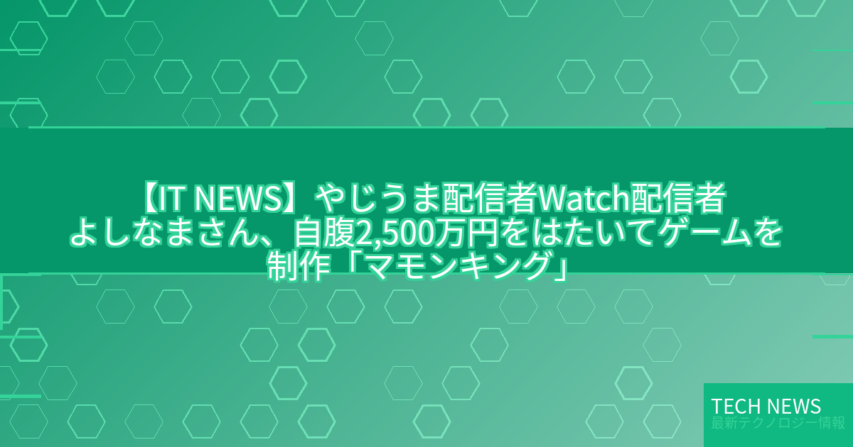 記事タイトル:【やじうま配信者Watch】配信者よしなまさん、自腹2,500万円をはたいてゲームを制作「マモンキング」