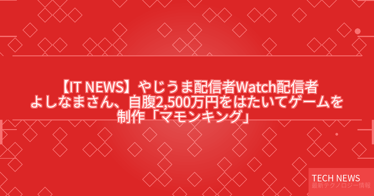 記事タイトル:【やじうま配信者Watch】配信者よしなまさん、自腹2,500万円をはたいてゲームを制作「マモンキング」