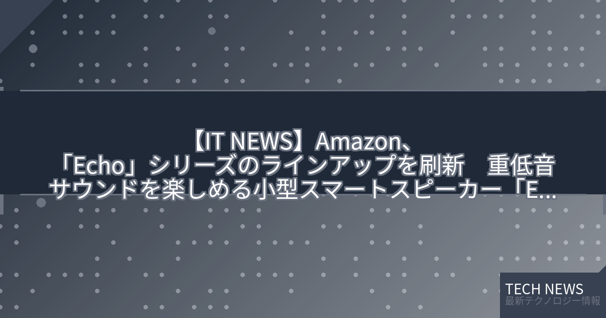 ・元記事タイトル:Amazon、「Echo」シリーズのラインアップを刷新 重低音サウンドを楽しめる小型スマートスピーカー「Echo Dot Max」が新たに登場