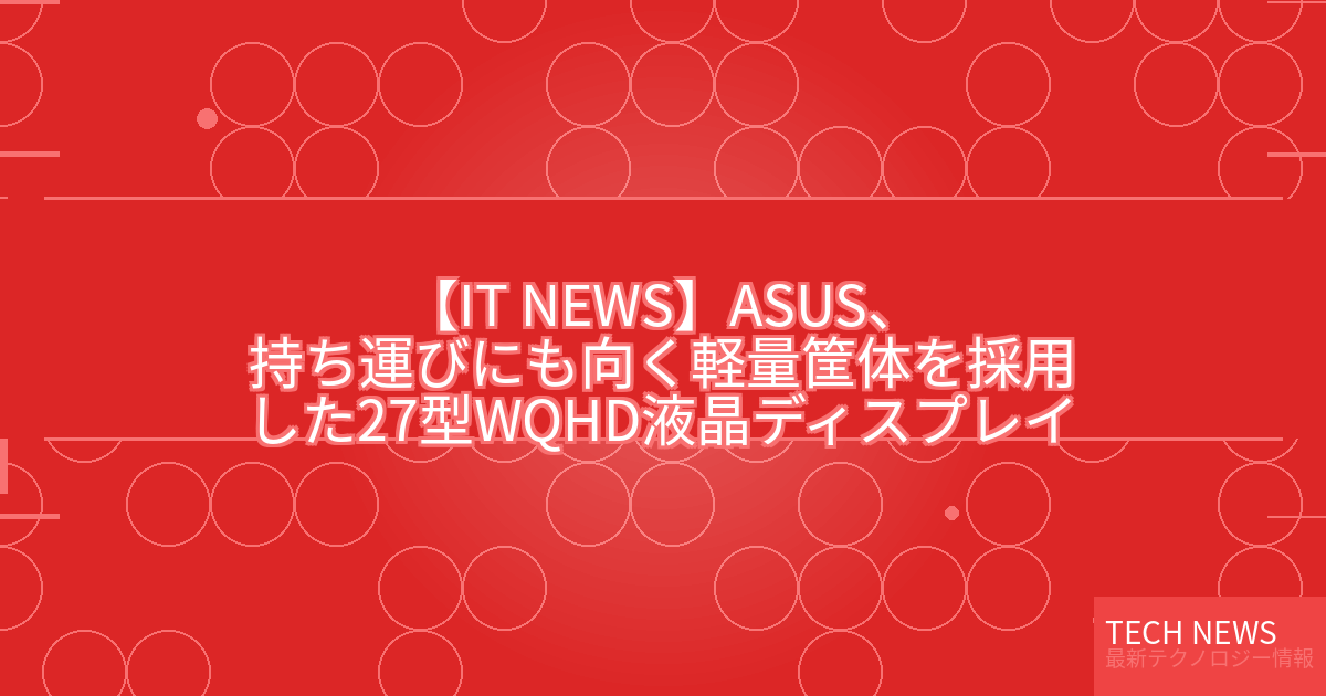 記事タイトル:ASUS、持ち運びにも向く軽量筐体を採用した27型WQHD液晶ディスプレイ