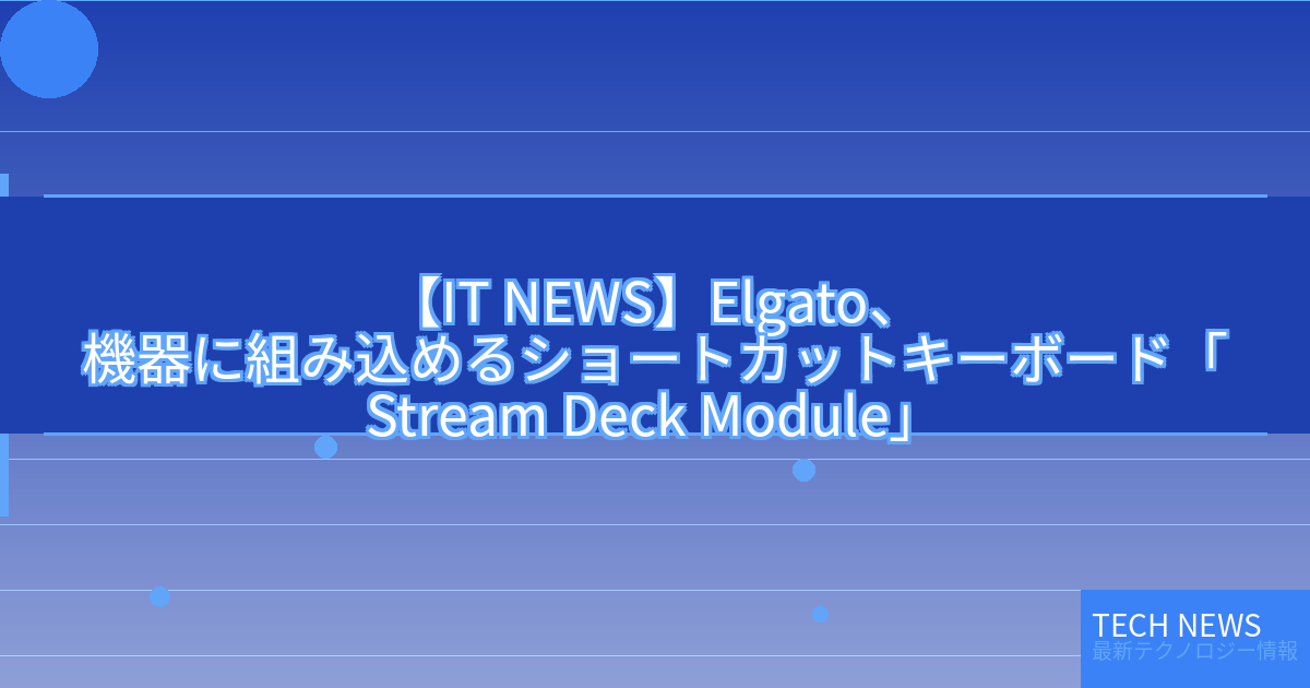 記事タイトル:Elgato、機器に組み込めるショートカットキーボード「Stream Deck Module」