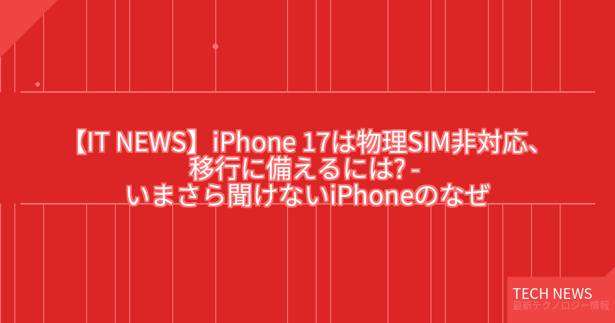 記事タイトル:iPhone 17は物理SIM非対応、移行に備えるには? – いまさら聞けないiPhoneのなぜ