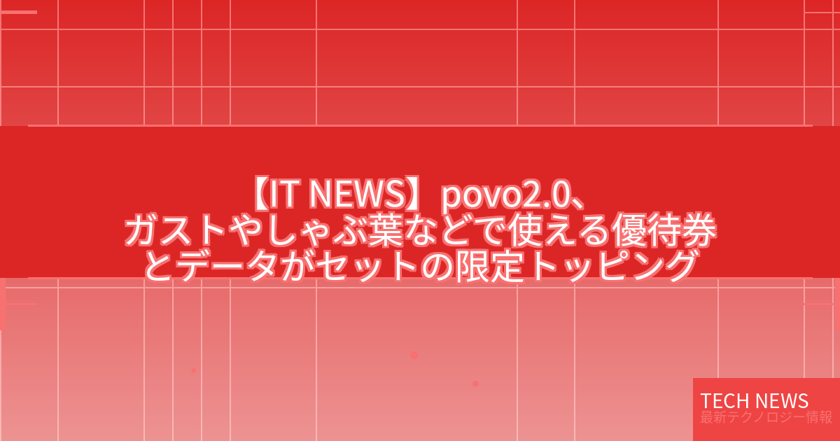 記事タイトル:povo2.0、ガストやしゃぶ葉などで使える優待券とデータがセットの限定トッピング