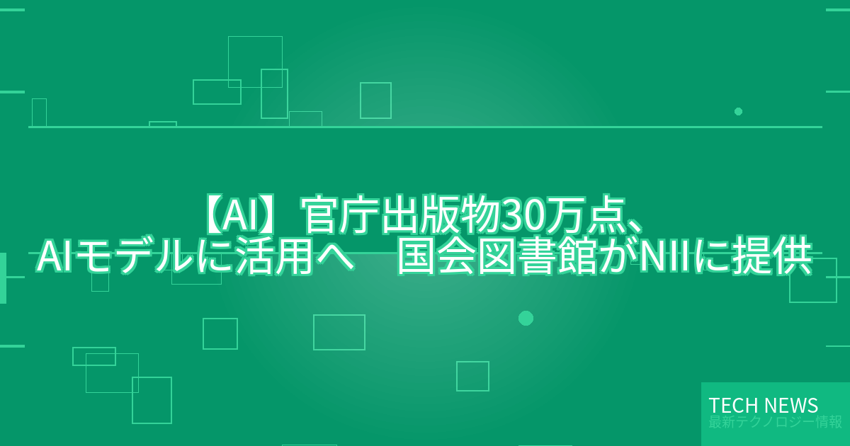 記事タイトル:官庁出版物30万点、AIモデルに活用へ 国会図書館がNIIに提供