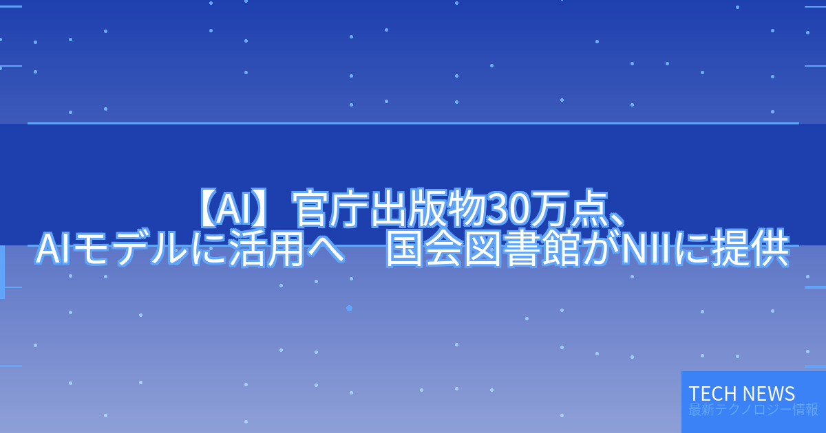 記事タイトル:官庁出版物30万点、AIモデルに活用へ 国会図書館がNIIに提供