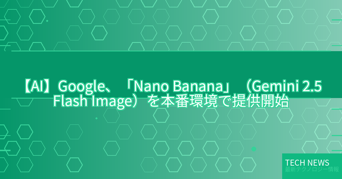 記事タイトル:Google、「Nano Banana」(Gemini 2.5 Flash Image)を本番環境で提供開始