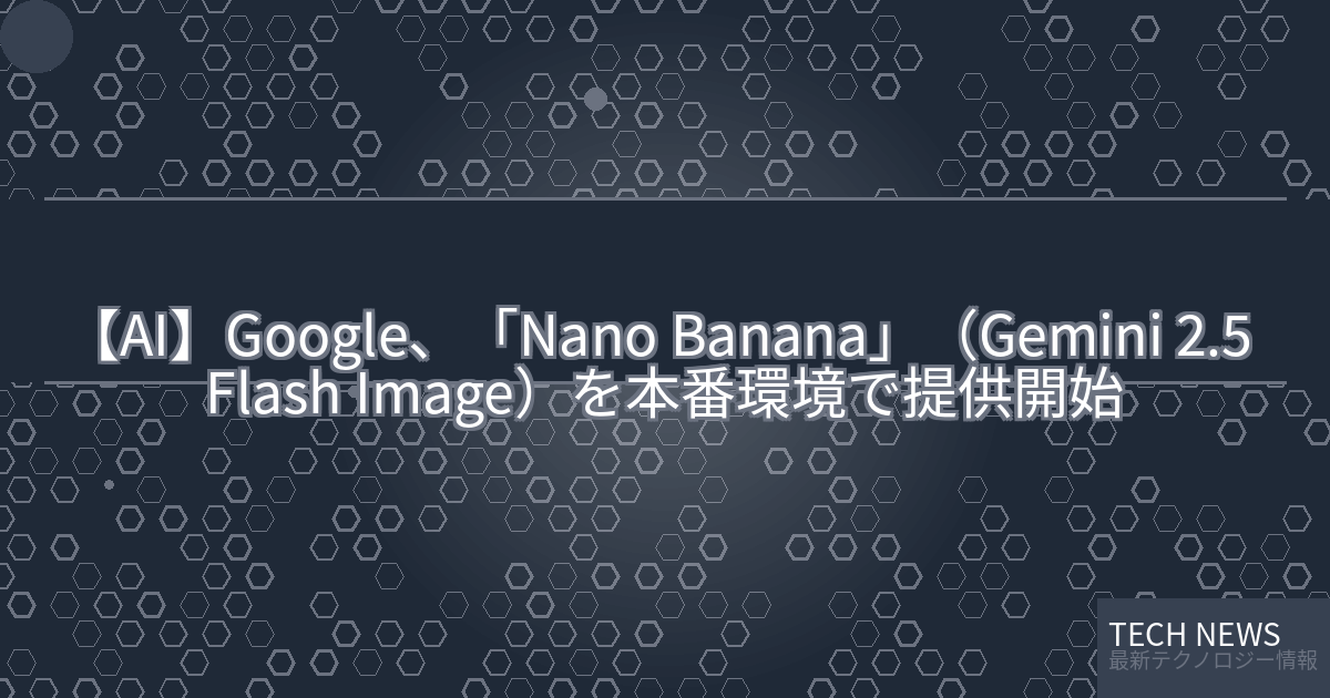 記事タイトル:Google、「Nano Banana」(Gemini 2.5 Flash Image)を本番環境で提供開始