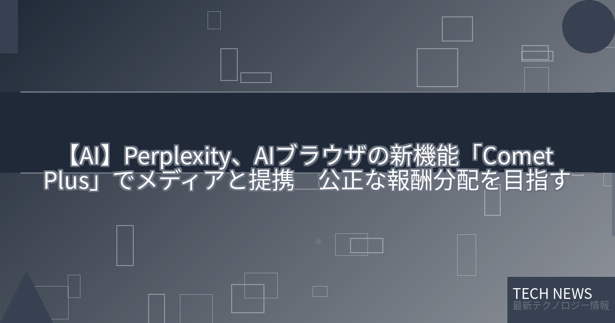 記事タイトル:Perplexity、AIブラウザの新機能「Comet Plus」でメディアと提携 公正な報酬分配を目指す