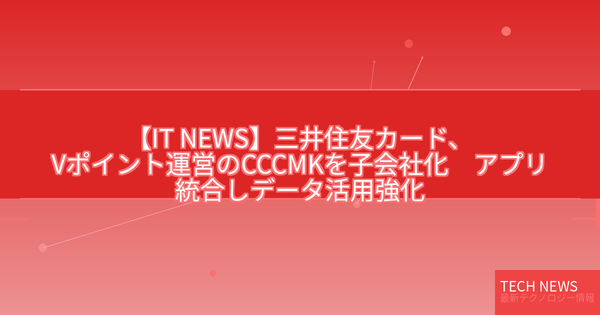 【IT NEWS】三井住友カード、Vポイント運営のCCCMKを子会社化 アプリ統合しデータ活用強化