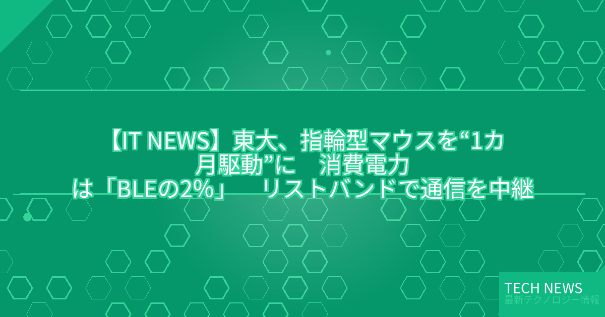 記事タイトル:東大、指輪型マウスを“1カ月駆動”に 消費電力は「BLEの2%」 リストバンドで通信を中継