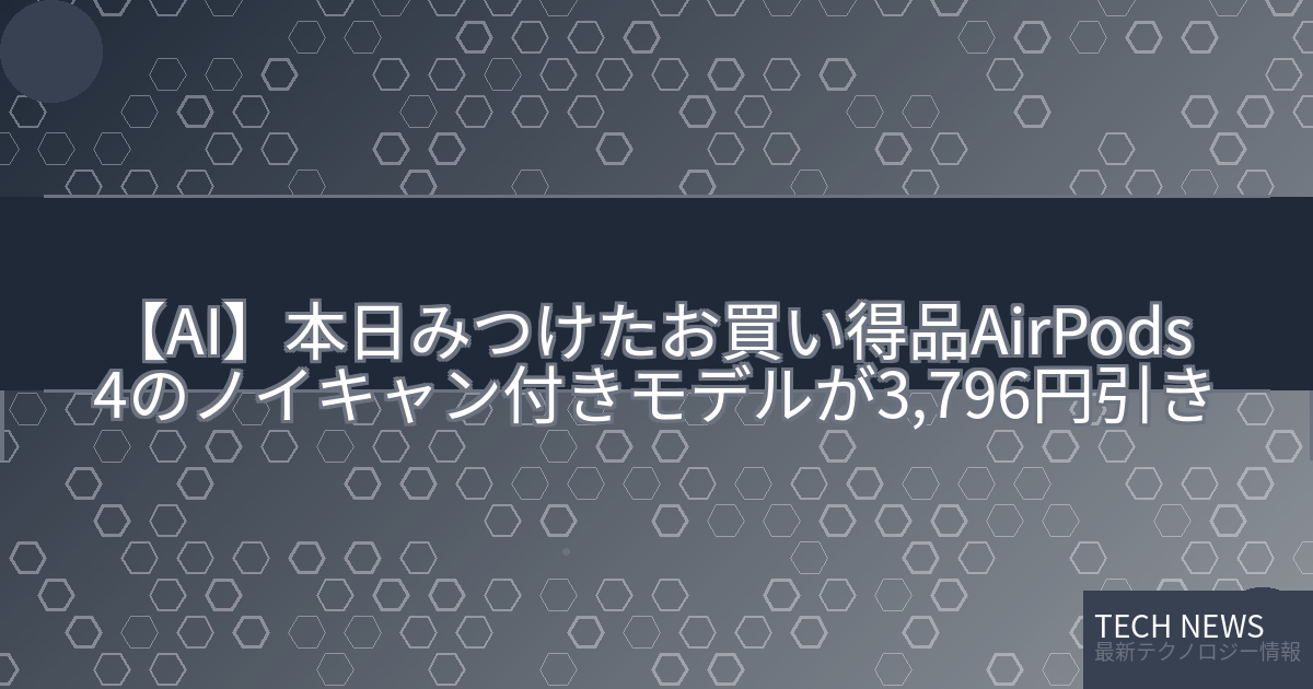 記事タイトル:【本日みつけたお買い得品】AirPods 4のノイキャン付きモデルが3,796円引き