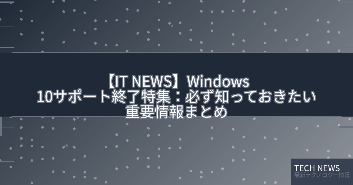 【IT NEWS】Windows 10サポート終了特集:必ず知っておきたい重要情報まとめ