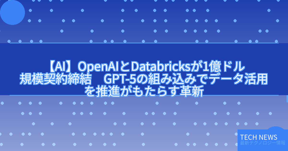 記事タイトル:OpenAIとDatabricksが1億ドル規模契約締結 GPT-5の組み込みでデータ活用を推進