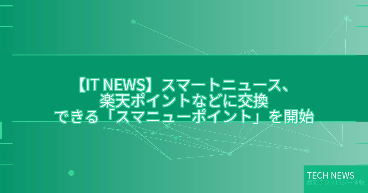 【IT NEWS】スマートニュース、楽天ポイントなどに交換できる「スマニューポイント」を開始