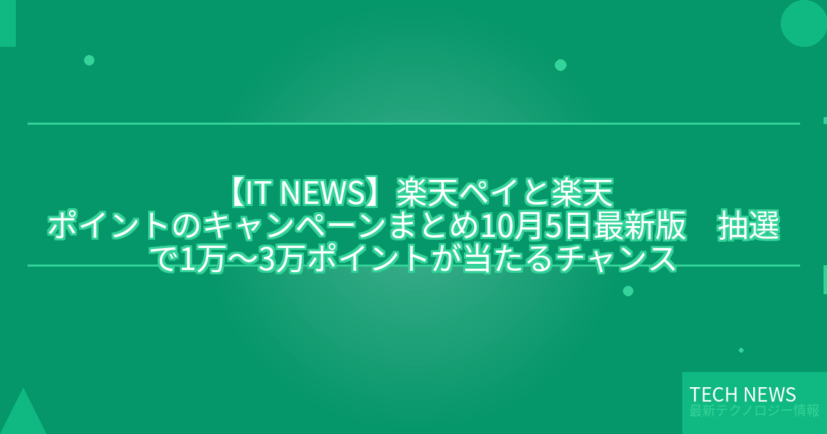 【IT NEWS】楽天ペイと楽天ポイントのキャンペーンまとめ10月5日最新版 抽選で1万~3万ポイントが当たるチャンス