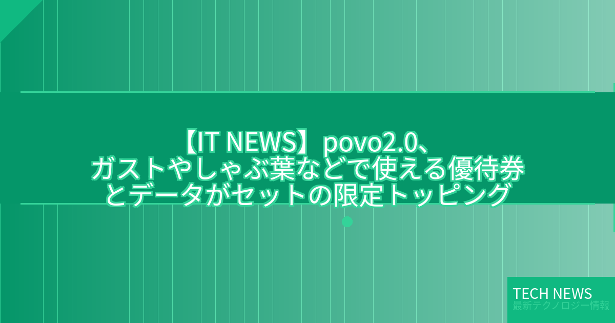 【IT NEWS】povo2.0、ガストやしゃぶ葉などで使える優待券とデータがセットの限定トッピング