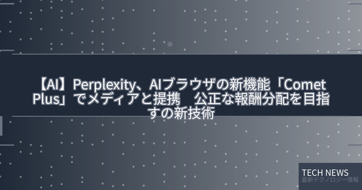 記事タイトル:Perplexity、AIブラウザの新機能「Comet Plus」でメディアと提携 公正な報酬分配を目指す