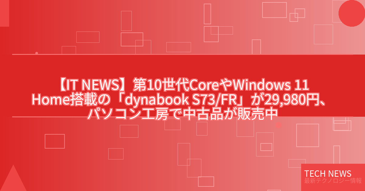 記事タイトル:第10世代CoreやWindows 11 Home搭載の「dynabook S73/FR」が29,980円、パソコン工房で中古品が販売中