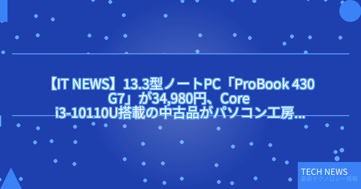 記事タイトル:13.3型ノートPC「ProBook 430 G7」が34,980円、Core i3-10110U搭載の中古品がパソコン工房で販売中