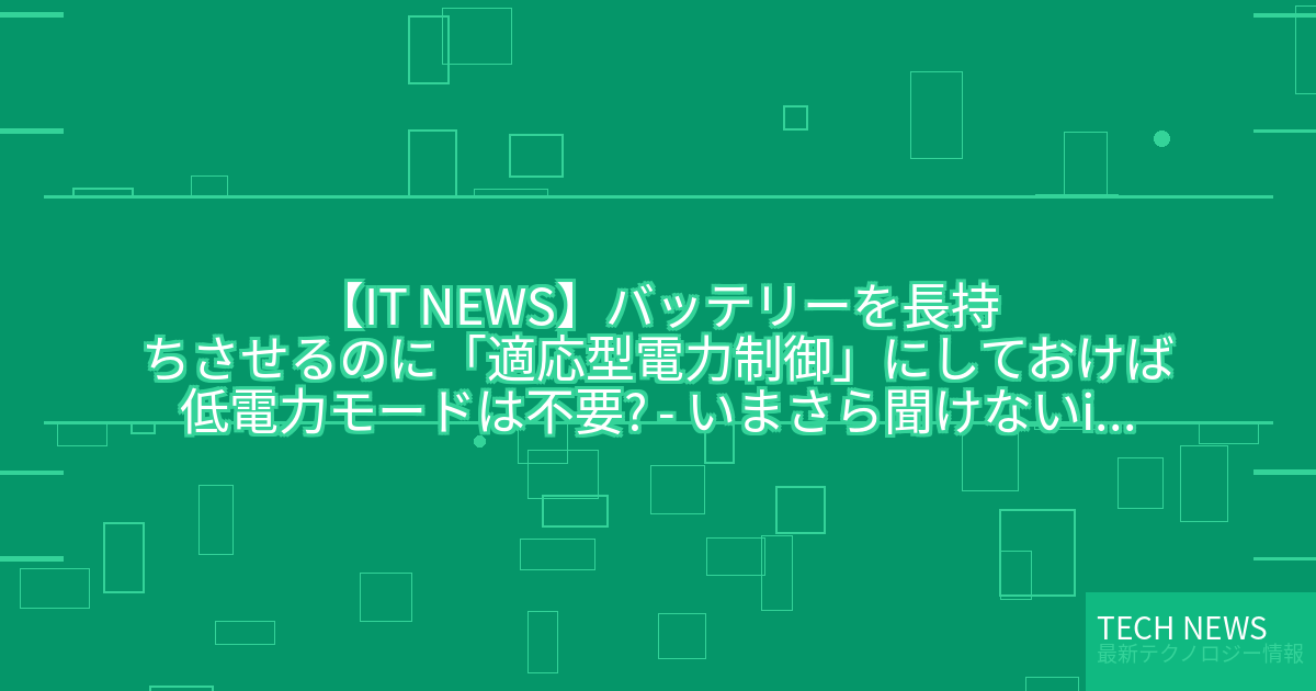 ・元記事タイトル:バッテリーを長持ちさせるのに「適応型電力制御」にしておけば低電力モードは不要? – いまさら聞けないiPhoneのなぜ