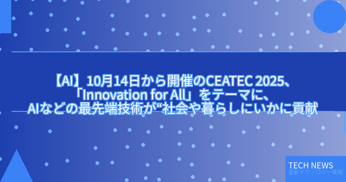 ・元記事タイトル:10月14日から開催のCEATEC 2025、「Innovation for All」をテーマに、AIなどの最先端技術が“社会や暮らしにいかに貢献するか”を体感できる機会に