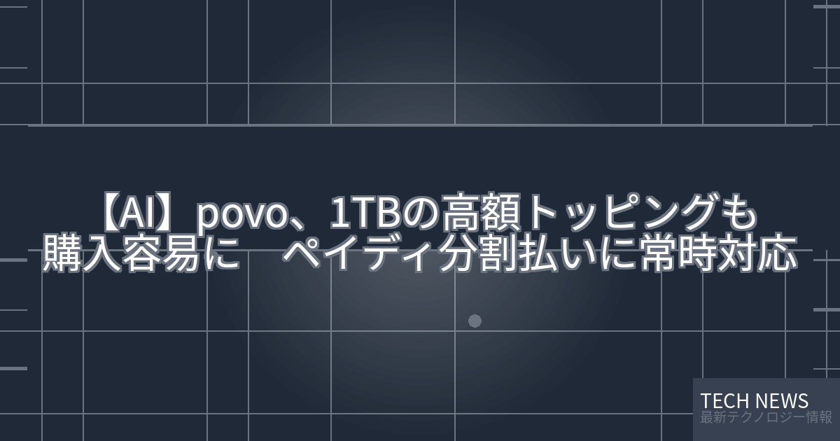 記事タイトル:povo、1TBの高額トッピングも購入容易に ペイディ分割払いに常時対応