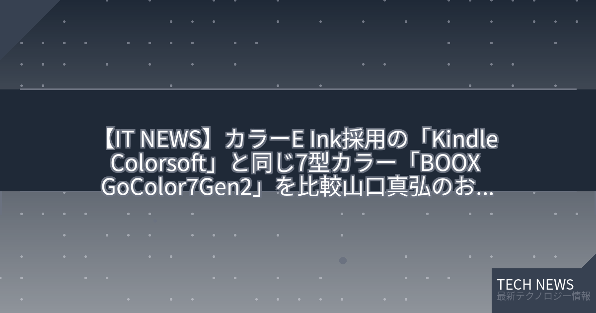 【IT NEWS】カラーE Ink採用の「Kindle Colorsoft」と同じ7型カラー「BOOX GoColor7Gen2」を比較山口真弘のおすすめ読書タブレット比較