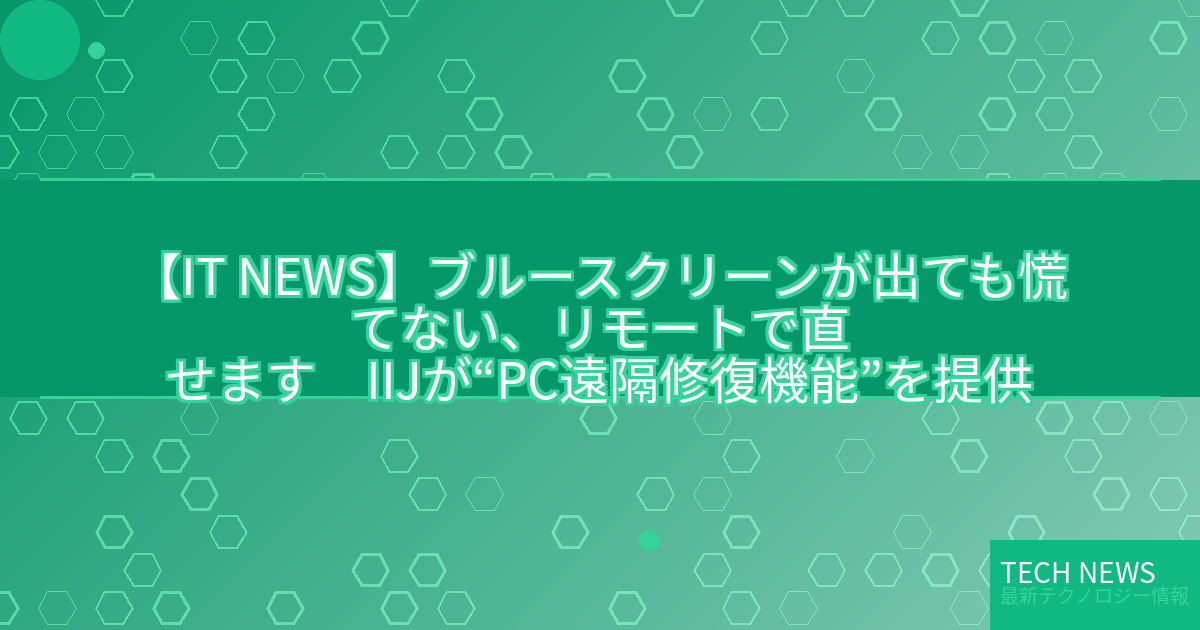 記事タイトル:ブルースクリーンが出ても慌てない、リモートで直せます IIJが“PC遠隔修復機能”を提供