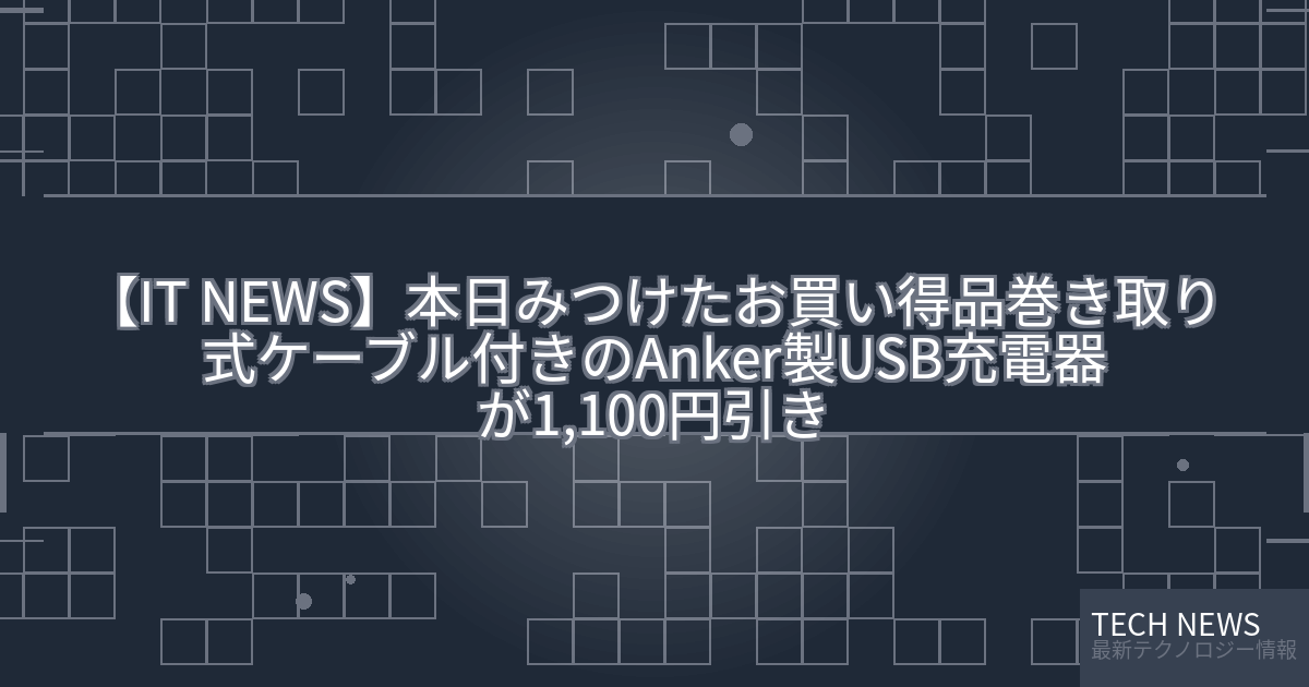 記事タイトル:【本日みつけたお買い得品】巻き取り式ケーブル付きのAnker製USB充電器が1,100円引き